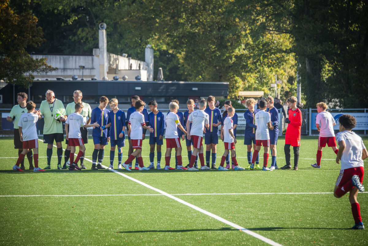Het was even puzzelen om in één avond een team bij elkaar te sprokkelen, maar uiteindelijk lukte het. De JO13-1 vormde de basis, met hulp van spelers uit de JO14-1 en JO14-2. Zo konden we onze eerste wedstrijd tegen ASC JO13-1 starten met dertien jongens en één meisje. Nog nooit samen gespeeld en dan meteen tegen een hoofdklasser: dat beloofde wat.